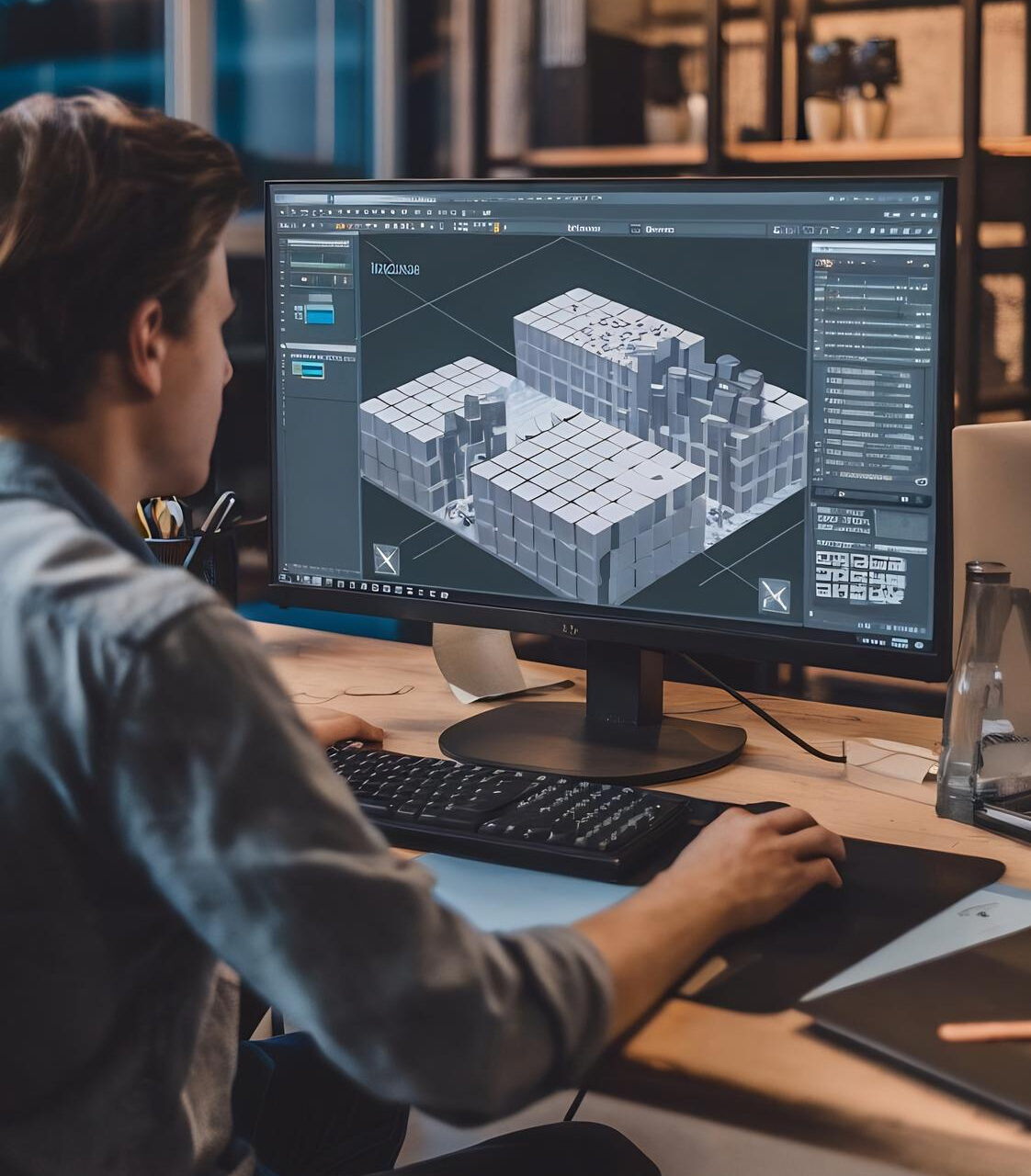 Através da metodologia BIM, desenvolvemos modelos tridimensionais ricos em informação, que integram todas as disciplinas do projeto, como arquitetura, estrutura, instalações e segurança, em um único ambiente digital, facilitando o planejamento e a execução da obra.